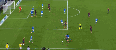 第15分鐘,那不勒斯后場出球失誤,勞塔羅近距離射門被撲出
